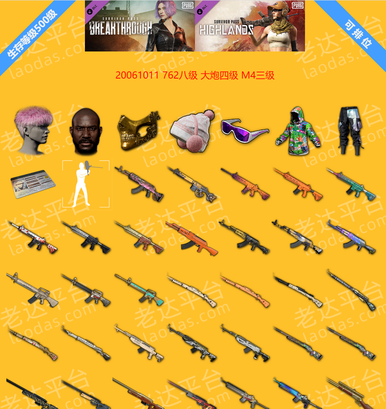 - 762八级 大炮四级 M4三级 粉头 黑鬼 金面 滑雪套 竞猜裤 改名卡 500生存
