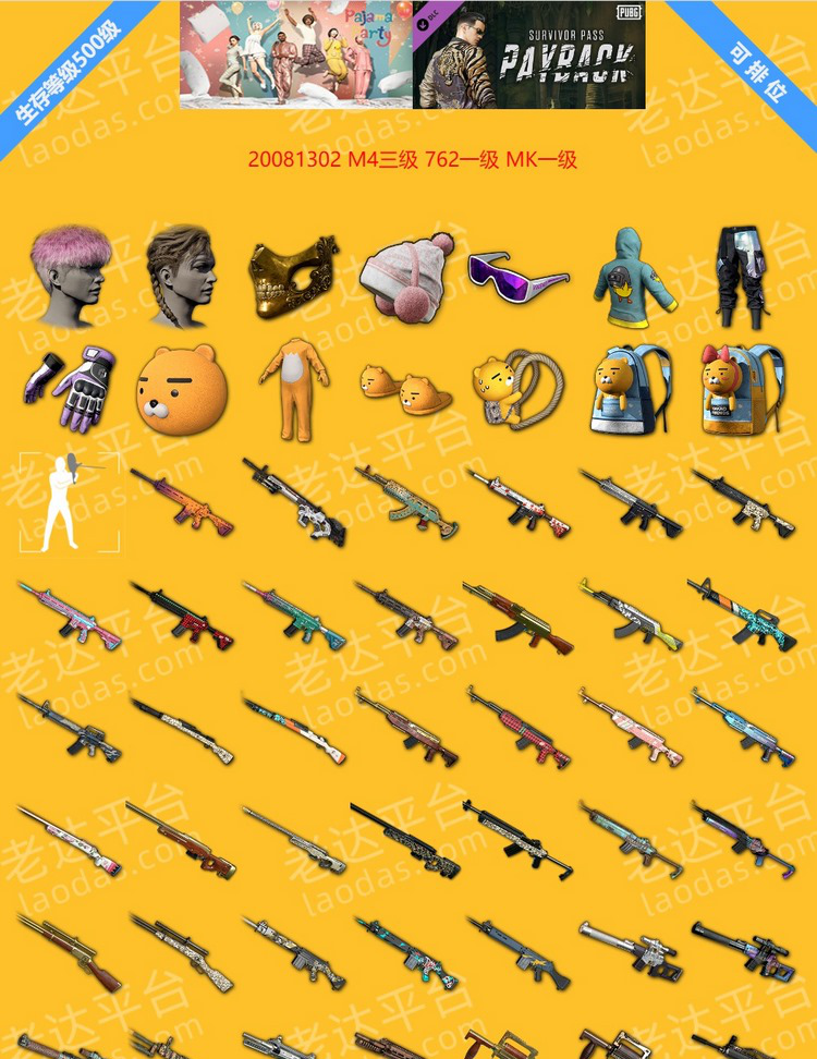 - M4三级 762一级 MK一级 粉头 金面 滑雪套 鸡警上衣 竞猜裤 小黑盒 可可套 500生存