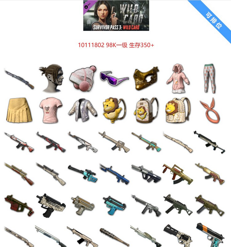 - 98K一级 脏辫 滑雪套 金面 兔子套 悲喜背包 发带 枫叶M4