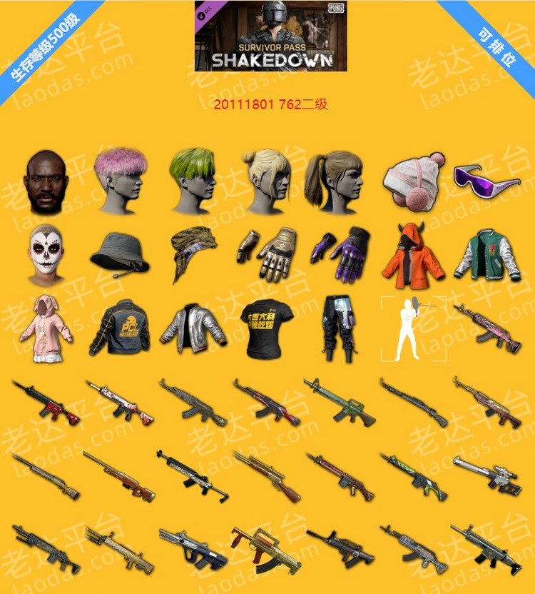- 762二级 粉头 黑鬼 绿头 双马尾 丸子头 滑雪套 渔夫帽 黄金手套 紫喵喵 PCL夹克 黑大 竞猜裤 500生存 绷带AK