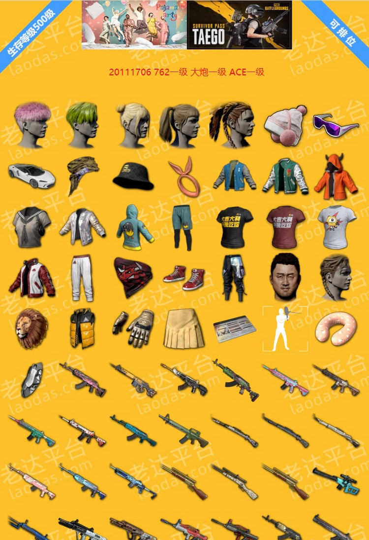 - 762一级 大炮一级 ACE一级 粉头 绿头 丸子头 双马尾 滑雪套 迈凯伦 渔夫帽 发带 JK上衣 闪光夹克 鸡警套 黑大 红大 虎牙T NH套 竞猜裤 黄金手套 黄裙 改名卡 500生存 毒液762 附带只狼、CSGO、战地1、战地5、GTA5、火影忍者4、巫师3、彩虹6号、消逝的光芒、茶杯头、太空狼人杀、饥荒、apex、模拟人生4、求生之路2、文明6、罪恶装备、火炬之光、收获日2~