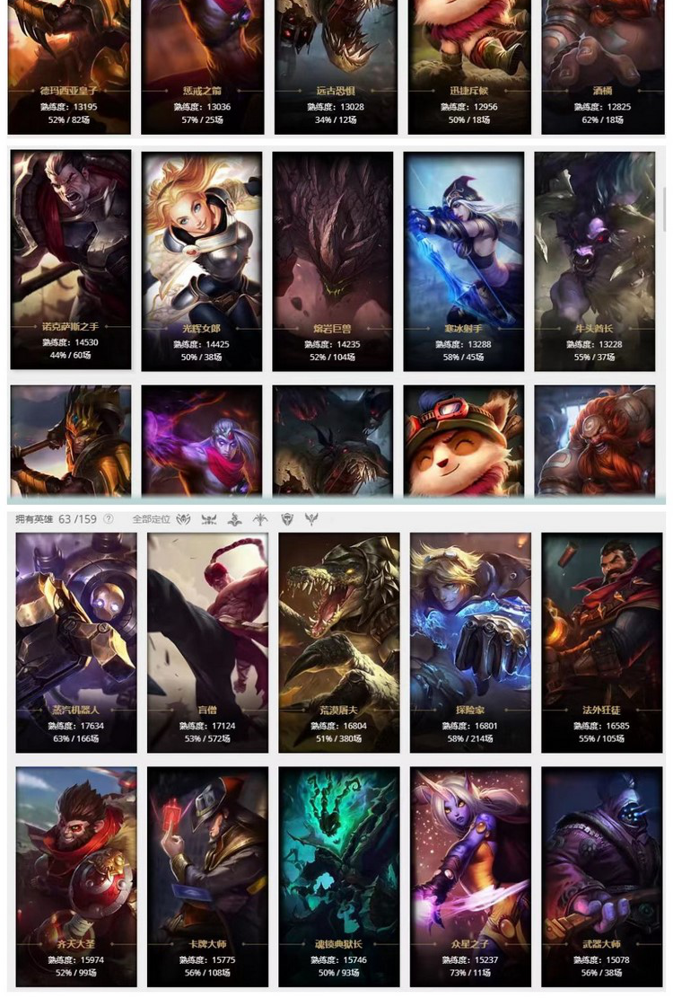 - 网通三区费雷尔卓德 22个皮肤 63个英雄